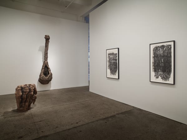 Another new addition is a concentration of von Rydingsvard’s works on paper, produced in connection with Dieu Donné, which display an exacting irregularity of knotted silk thread through handmade paper. In their delicacy, von Rydingsvard presents a transparency that thoughtfully juxtaposes the permanence and scale of her sculpted works with an equally impactful and more delicate medium.