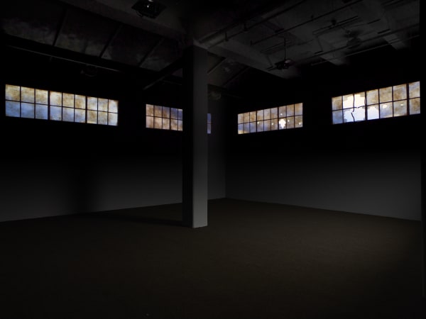 As viewers of …OUT OF HERE, we enter a darkened gallery space, with the only source of light being projections of horizontal windows along the perimeter towards the ceiling. We are inside looking out into the sky, and soon events unfold outside below our view. Innocuous sounds of daily life—a child bouncing his ball, women calling to each other, a truck stopping and unloading—are interrupted by sounds of gunfire and active combat. In a moment, our sense of distance and security is suspended; the distinction between observer and participant is breached. We cannot see the events occurring or the people’s faces—we perceive only a palpable level of fear, disorder, and panic. Wodiczko will also present Flame, 2010-2011, a video with sound recording of an attack on a U.S. convoy in Afghanistan. The work depicts a solitary flame flickering in synch with the sounds of the attack, and is on view in the adjoining gallery.
