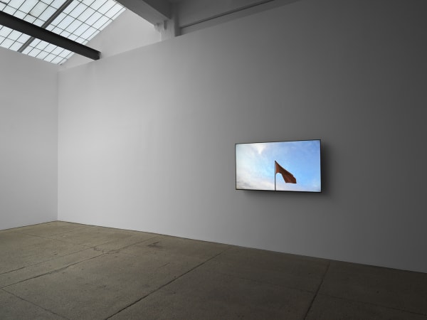 Accompanying the flags are two film works that are informed by or evoke the passage of time, a central theme of Goldsworthy’s art. The first film is a compilation of each flag flown and filmed at his studio throughout the pandemic’s confinement. The movement of the flags—sometimes calm and slow, sometimes furiously waving—brings opposing feelings of peace and distress. The second film captures a flag stained with earth from all 50 states of the U.S. flown in Scotland from November 3 to 4, 2020: a period beginning with the U.S.’s Election Day and ending as presidential results were being released. To date, the flag remains flying and will only be taken down by the artist at the next election. In this specific event and in his overarching practice, Goldsworthy notes our heightened awareness of time; a provoked and abrupt change in our minds set against the everyday reality of time steadily passing in nature.