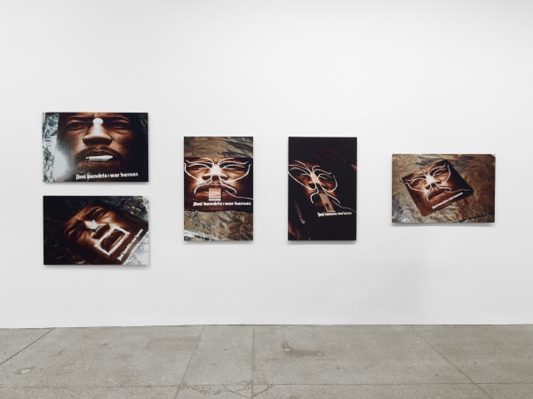Establishing the historicity of collaborative practice is Cosmococa, 1973/2003, conceived by Latin American avant-garde artists Hélio Oiticica and Neville D’Almeida in 1970s New York. Comprising an extensive series of C-prints produced as part of a radical, large-scale multisensory environment, Block-Experiments in Cosmococa – programa in progress (1973–74) was a series of nine ‘supra-sensorial’ environments that incorporated slide projections, soundtracks, cocaine powder drawings on pop culture photographs, and a set of instructions for visitors. Merging real life experiences with art, the artists overlaid film projection and amplified sounds in a multi-room installation arrayed with mattresses, balloons and other effects. Using powdered cocaine to draw lines around the eyes, noses and mouths on the cover image of Norman Mailer's Marilyn Monroe biography, Jimi Hendrix’s War Heroes album, and Luis Buñuel pictured in The New York Times Magazine, among others, the artists created subversive images that pushed their anti-establishment position. The photographs and surrounding environment were strewn with paraphernalia such as rolling papers, knives and matches and then re-photographed from a variety of angles, expressing an edgy, restless and resistant attitude.