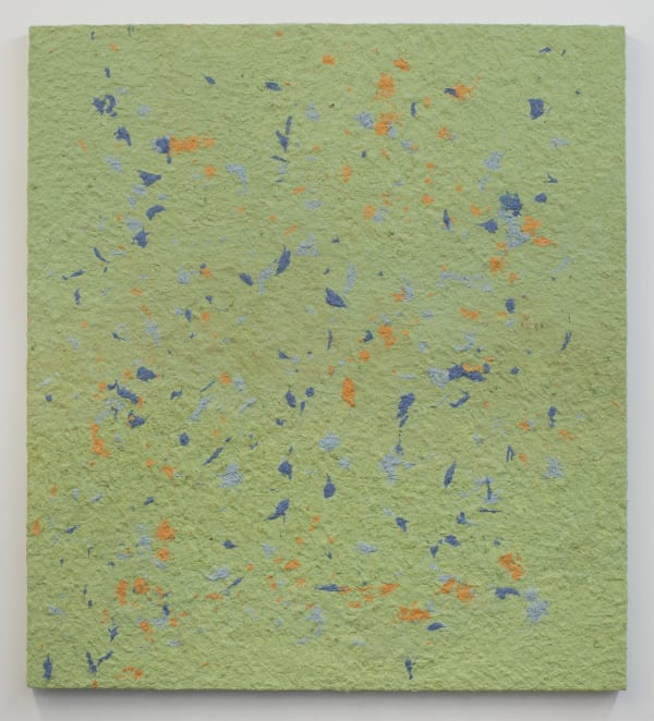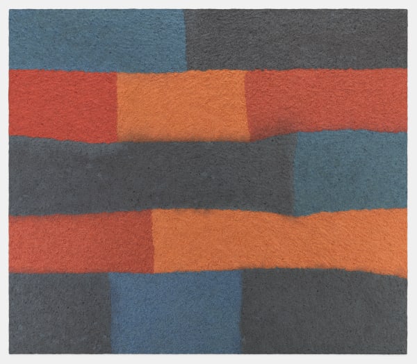 Jones begins by locating the human stakes within the archives, in both their material and abstract forms. Reconfigured law books, for example, prompt not only a reexamination of legality and who is not, at various times, considered legal, but also how easily the law can change. A further evolution occurs in a series of pulped fabric paintings. Book covers have been pulverized beyond recognition and then left to dry in evocative shapes.
