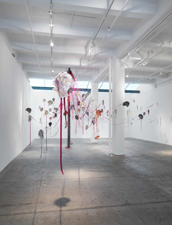 Galerie Lelong is pleased to present the first ever US installation of Nancy Spero’s large-scale, three-dimensional sculpture Maypole: Take No Prisoners. Initially created for the grand entryway of the 52nd Biennale di Venezia in 2007, Maypole: Take No Prisoners provokes critical discussion about the cyclical nature of history, war, and its victims. Lelong’s smaller gallery room will feature an early inspiration for the Maypole sculpture, Kill Commies / Maypole (1967), alongside additional works on paper from The War Series, many of which have never been shown in New York.